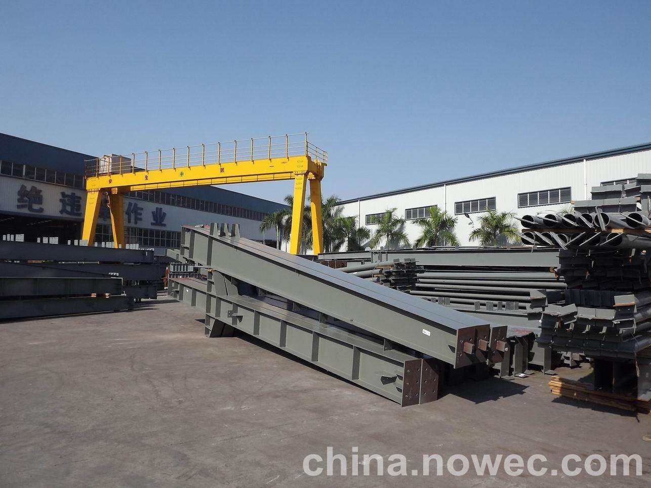 条状单元一般沿长跨方向分割,其宽度约为1~3个网格,其长度为l2或l2/2(l2为短跨跨距)。块状单元一般沿青岛网架平面纵横向分割成矩形或正方形单元。每个单元的重量以现有起重机能胜任为准。条(块)与条(块)之间可以直接拼装,也可空一网格在高空拼装。由于条(块)状单元是在地面拼装,因而高空作业量较高空散装法大为减少,拼装支架也减少很多,又能充分利用现有起重设备,故较经济。这种安装方法适用于分割后网架的钢度和受力状况改变较小的各类中小型网架,如两向正交正放四角锥、正放抽空四角锥等网架。